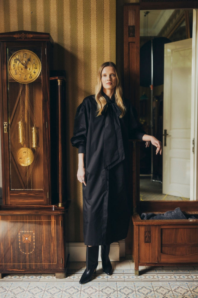 The label ensures transparency of its production process. All items are made in Poland, using fabrics from France and Italy. The label doesn't over produce items to avoid waste.