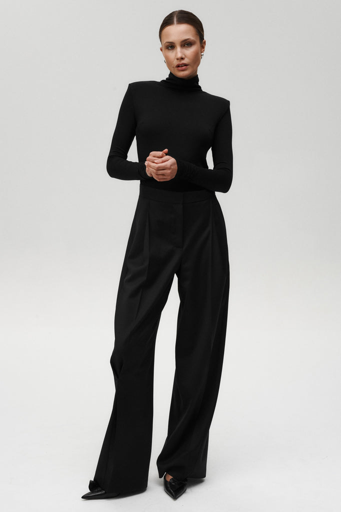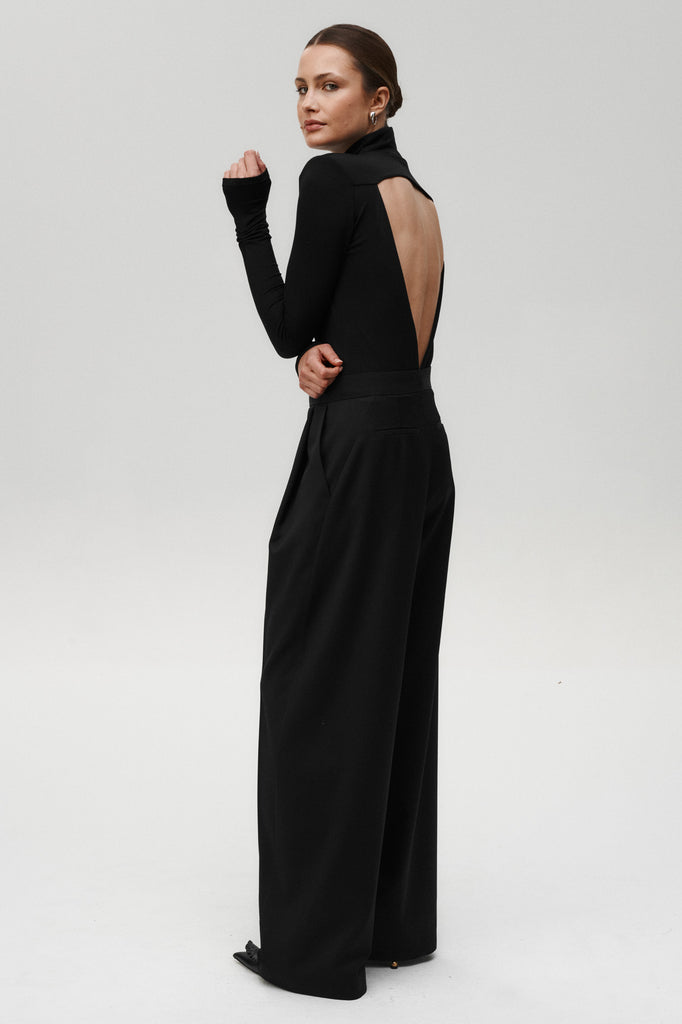 A classic shape with a bold twist. The front stays high and clean, while the back opens completely for a sharp, unexpected reveal. Soft gathers at the wrist add a refined touch. Wide, structured shoulders and a taller stand collar sculpt perfect proportions, strong on top, narrow at the waist. Made from our signature tencel, it’s comfortable, flattering and easy to wear on repeat. A simple essential with a quiet statement edge.