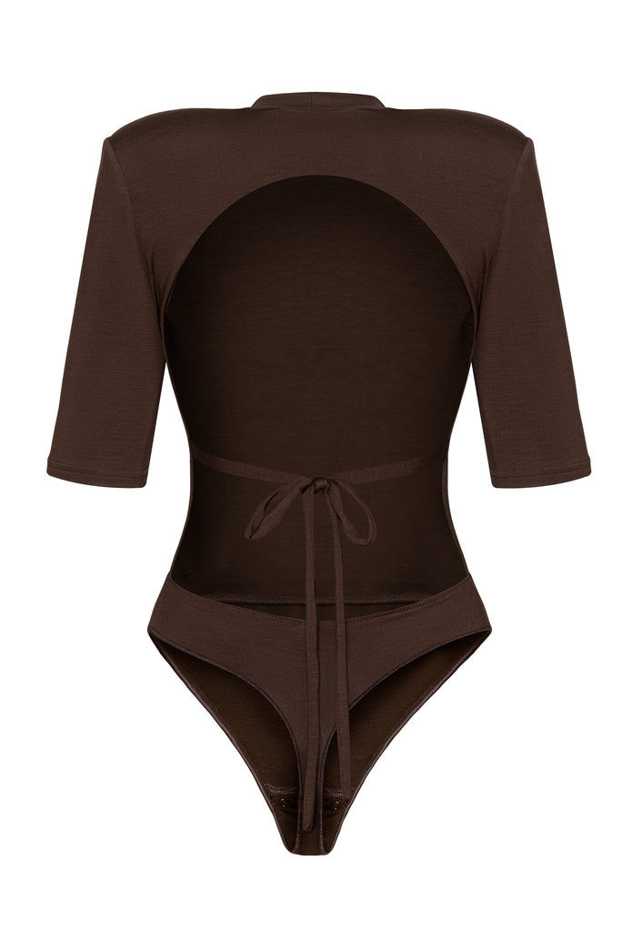Wir haben diesen Body Watch Your Back genannt, weil es keine Möglichkeit gibt, dass dein Rücken nicht im Mittelpunkt steht, wenn du ihn trägst. Die Schulterpolster zeigen, dass starke, aber auch feminine Silhouetten immer noch im Trend liegen.