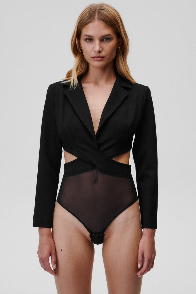 Ein Essential für die Garderobe jeder Girl-Boss. Ein Anzug-Cut-Bodysuit, der die perfekte Balance zwischen Komfort und Eleganz schafft. Entworfen für formelle Anlässe, aber wir lieben ihn auch für lässige Alltagslooks. We are obsessed with it!