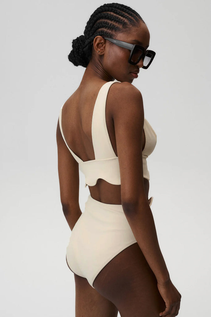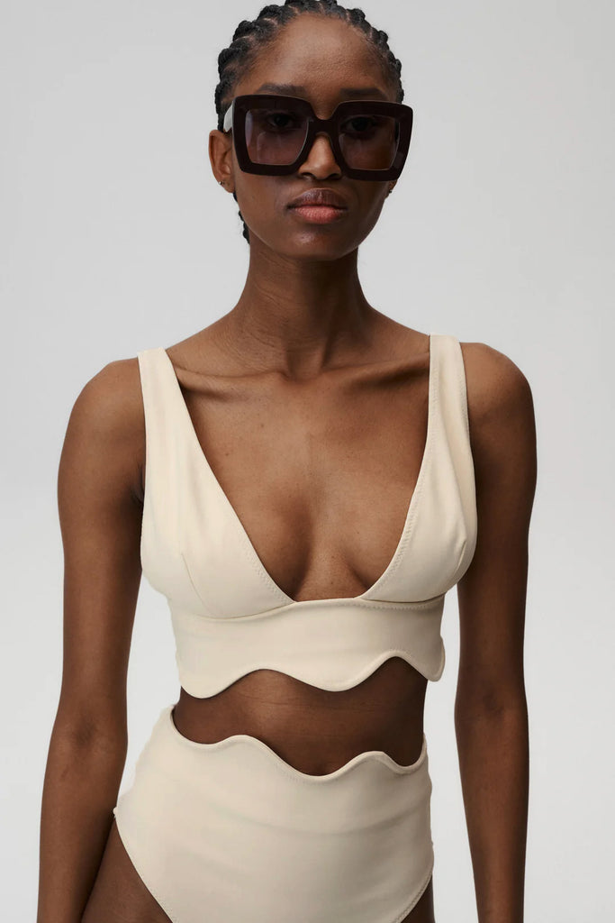 Das Bardot Bikini Top ist eine Mischung aus zeitlosem Stil und subtiler Verspieltheit im Design.
