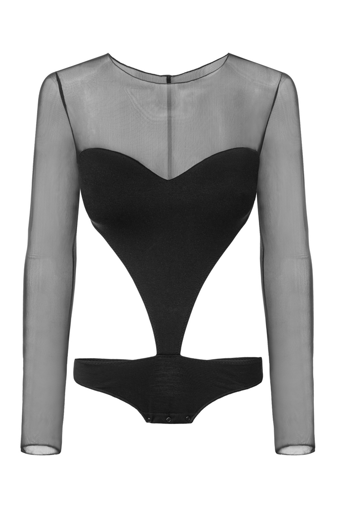 Das First Love Bodysuit besticht durch strategisch platzierte Cut-Outs, die die Taille elegant betonen und eine atemberaubende Sanduhr-Silhouette schaffen. Durchsichtige lange Ärmel und ein herz inspiriertes Design fügen eine raffinierte und zugleich gewagte Note hinzu, wodurch es eine herausragende Wahl für besondere Anlässe und gehobene Alltags-Stylings ist. Kombiniere es mit maßgeschneiderten Hosen für einen modernen Look oder einem eleganten Minirock, um die kühne Weiblichkeit zu betonen. Perfekt für den Valentinstag oder jeden Moment, in dem man Eindruck hinterlassen möchte.