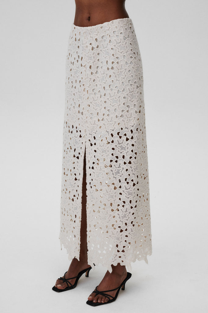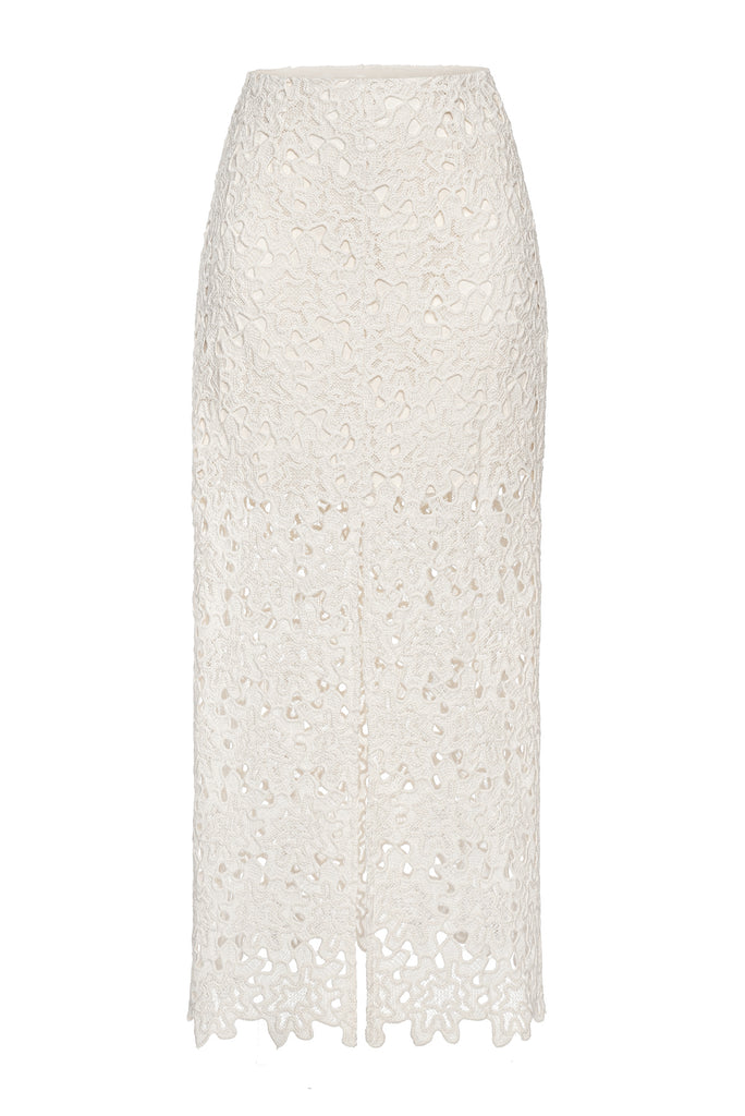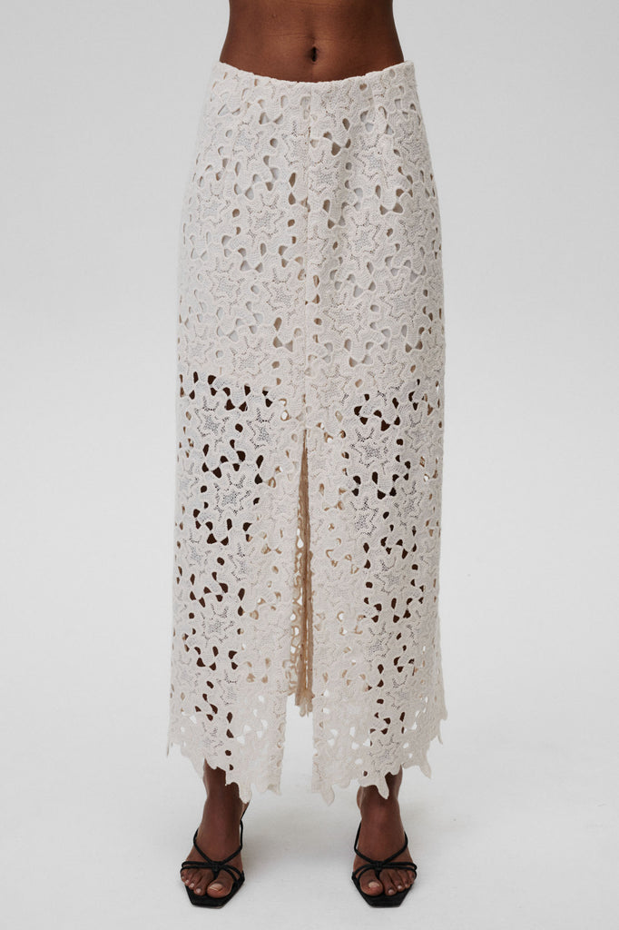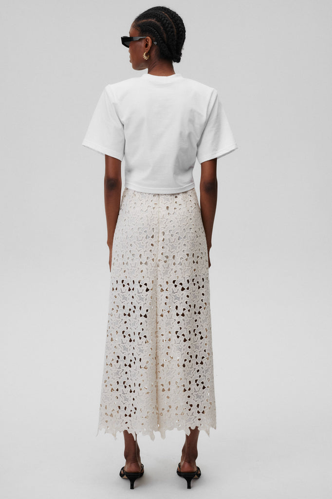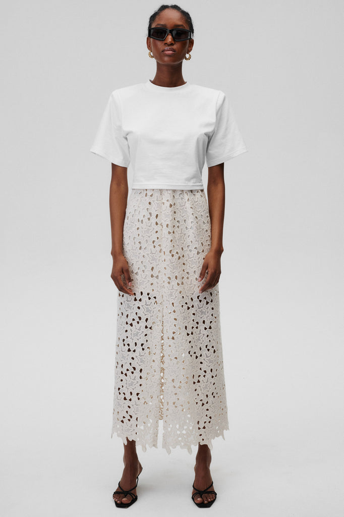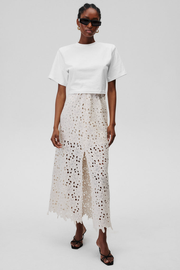 - Gerade geschnittener Midirock aus Baumwollspitze.