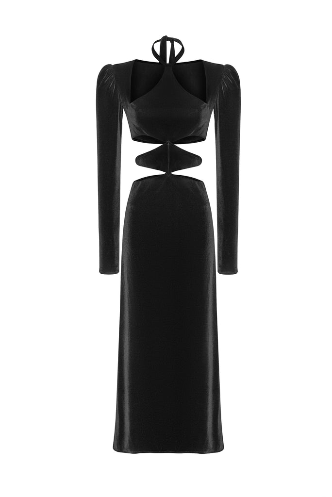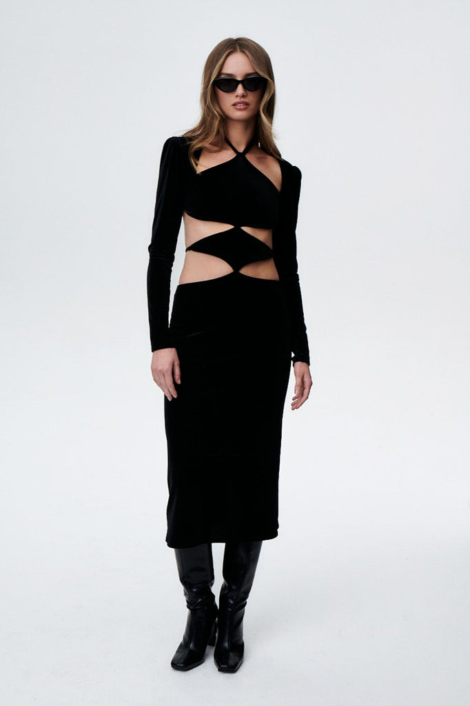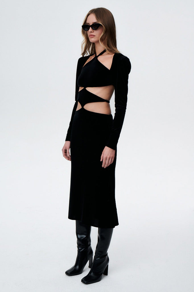 Wir lieben ungewöhnliche Cut-Outs. Material Girl ist ein Kleid, das mit außergewöhnlichen Details alle Blicke auf sich zieht. Eine spannende Vorderseite und ein sehr klassisches Rückenteil, abgerundet durch tiefschwarzen Samt.