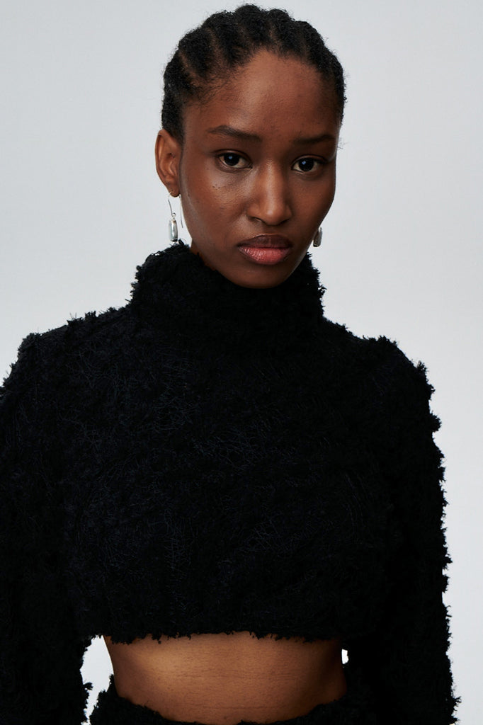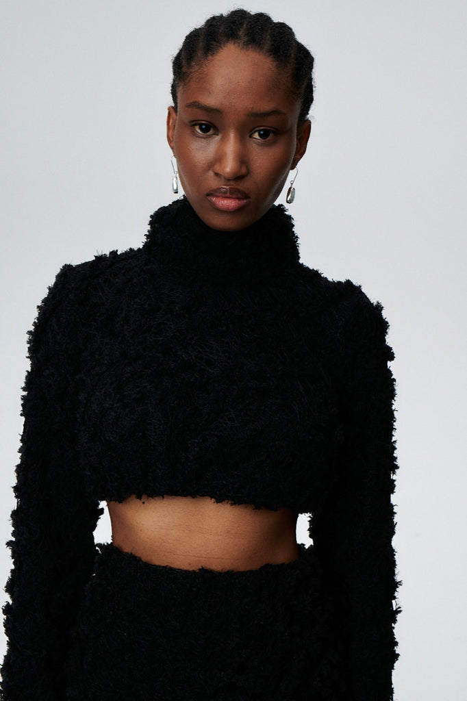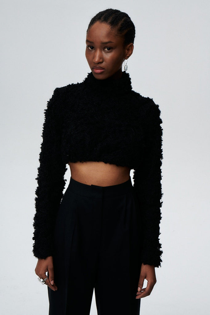 - Top aus strukturiertem Stoff mit Rollkragen.