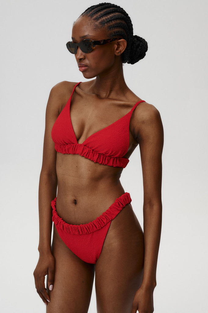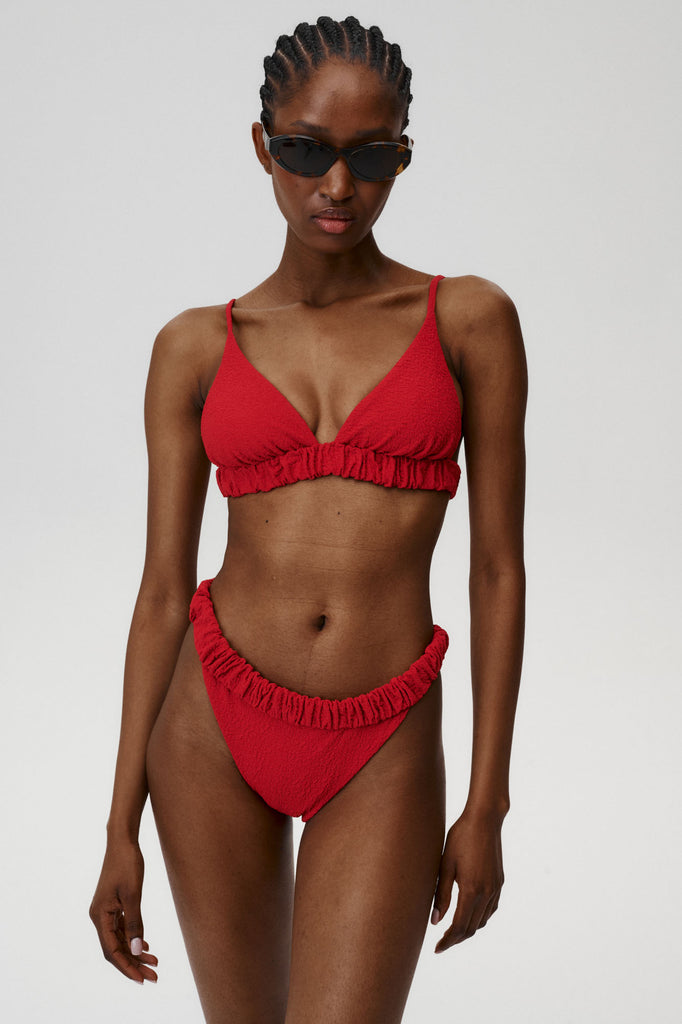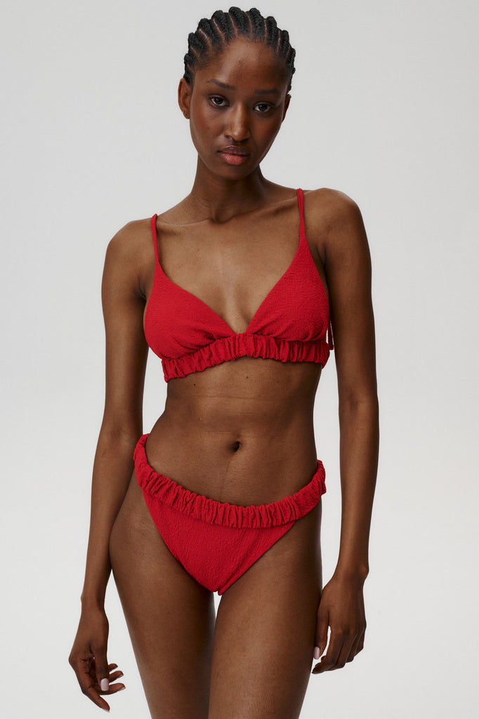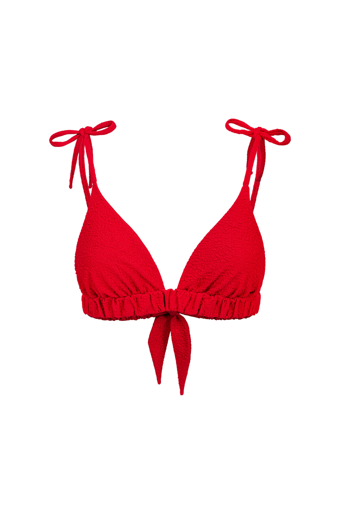 Wenn du von sonnengeküsster Haut träumst, ist „Before Sunrise“ die perfekte Wahl. Die Schnürung an den Schultern und am Rücken sorgt für einen gleichmäßigen Teint, der weiche Cup bietet Komfort, und der gekräuselte Gummi sorgt für Halt. Das perfekte Top für Shorts, wenn du schnell in den kleinen italienischen Laden für frische Erdbeeren gehen musst.
