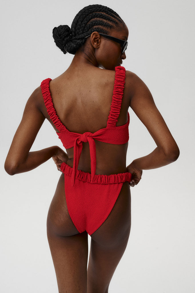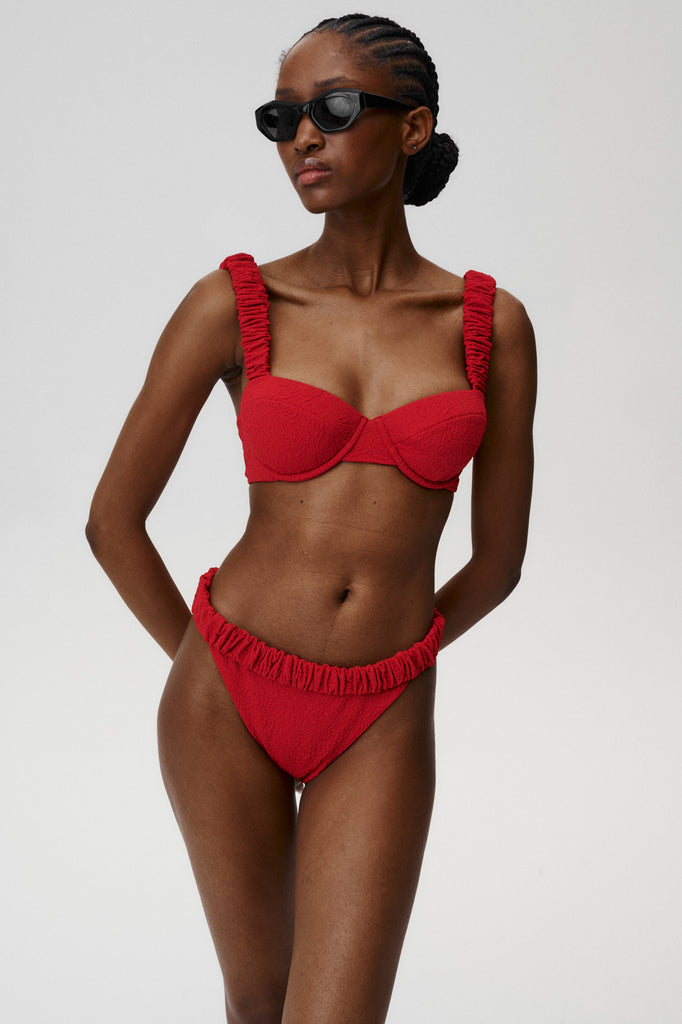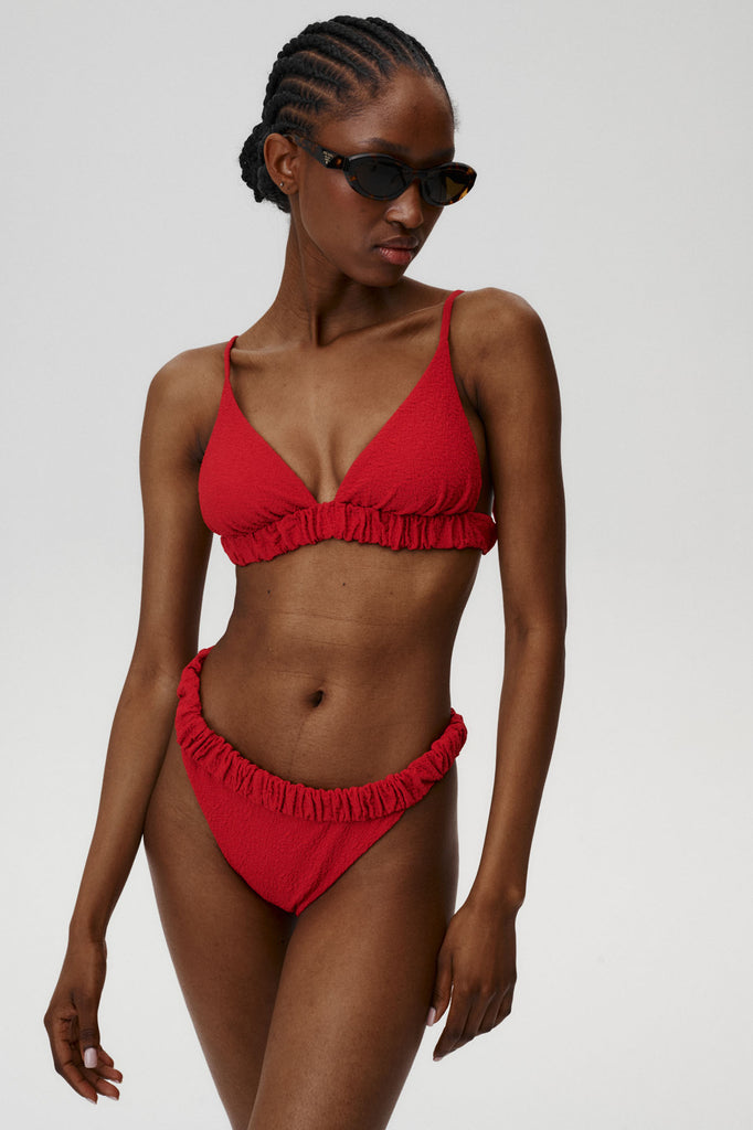 Girlish Charm ist ein Bikini, der viele Jahre bei dir bleiben wird und dich bei jeder Reise in die entferntesten Ecken der Welt begleiten wird. Der klassische Schnitt aus unserem strukturierten Material mit dekorativen, gerüschten Gummibändern wurde entworfen, damit du dich in deiner eigenen Haut wohlfühlst. Alles, was du für diesen Bikini brauchst, ist Sonne und Haare, die mit Salzwasser aus dem Meer besprüht sind.