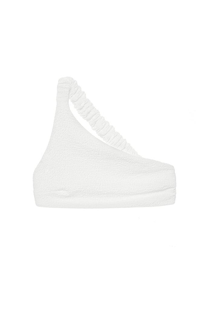 Dieses Oberteil ist ein asymmetrischer Traum. Dank des Schulterträgers auf der rechten Schulter und der beiden geknitterten Träger auf dem Rücken umschließt und hält der Bikini die Brust sehr gut, sodass Sie sich beim Laufen am Strand oder beim Surfen sicher fühlen können.