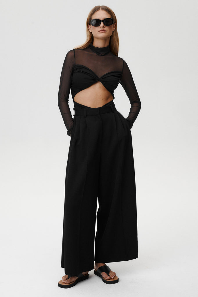 Ivy definiert Eleganz neu – mit einem hohen Mesh-Ausschnitt, langen Ärmeln und gewagten Cut-outs. Das gedrehte Detail an der Vorderseite verleiht eine besondere Raffinesse, während die figurbetonte Silhouette einen Look kreiert, der sowohl ausdrucksstark als auch mühelos wirkt.