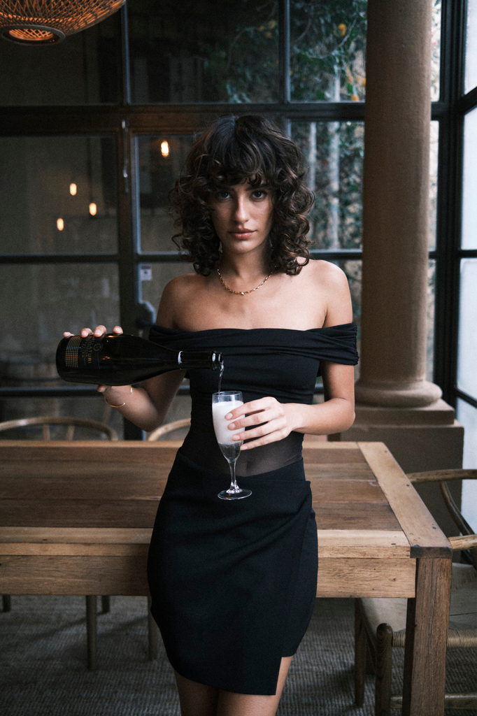 Verleih dir mühelose Eleganz mit dem Libra Bodysuit, einem Statement-Piece, das Sinnlichkeit mit Raffinesse vereint. Der off-shoulder drapierte Ausschnitt kreiert eine auffällige Silhouette, während das transparente Mesh-Oberteil eine kühne, moderne Note hinzufügt. Ob kombiniert mit hoch taillierten Hosen für einen eleganten Abendlook oder unter einer oversized Blazer getragen, dieses Stück wurde dafür entworfen, Blicke auf sich zu ziehen.