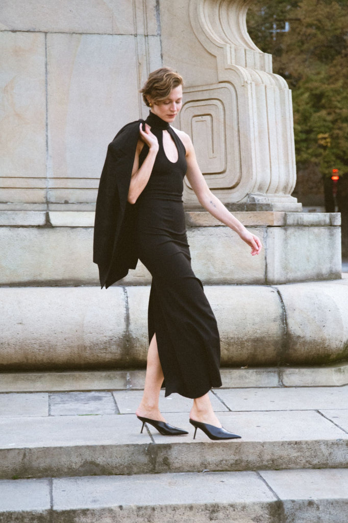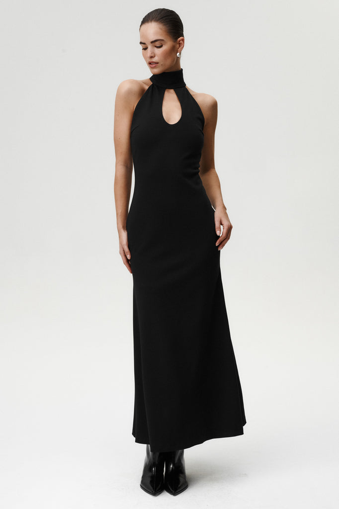 Das My Type Kleid vereint zeitlose Eleganz mit unseren charakteristischen Details. Von hinten vollständig bedeckt, zeigt es vorne einen Stehkragen mit einem dezenten Schlüssellochausschnitt und freien Schultern, eine Balance aus klassischer Raffinesse und moderner Sinnlichkeit. Gefertigt aus Punto-Stoff, der sich wunderschön an den Körper schmiegt. Der figurbetonte Schnitt mit ausgestelltem Saum im Meerjungfrauenstil fällt bis knapp über den Knöchel und sorgt für einen dramatischen Maxi-Effekt. Ein Futter aus Netzstoff garantiert Komfort und eine makellose Passform. Perfekt für Abendanlässe, bei denen zurückhaltende Eleganz im Mittelpunkt steht, denn manchmal sind es die kleinsten Details, die den stärksten Eindruck hinterlassen.