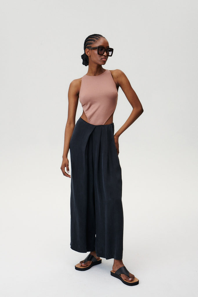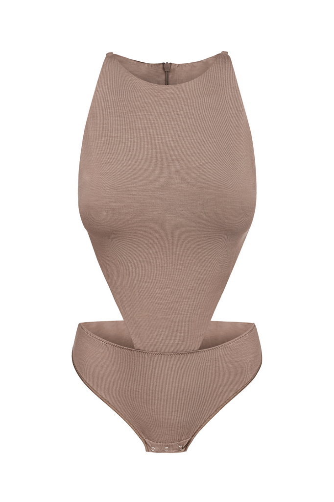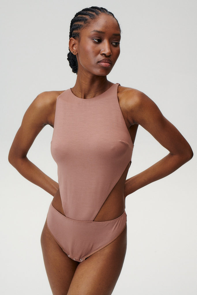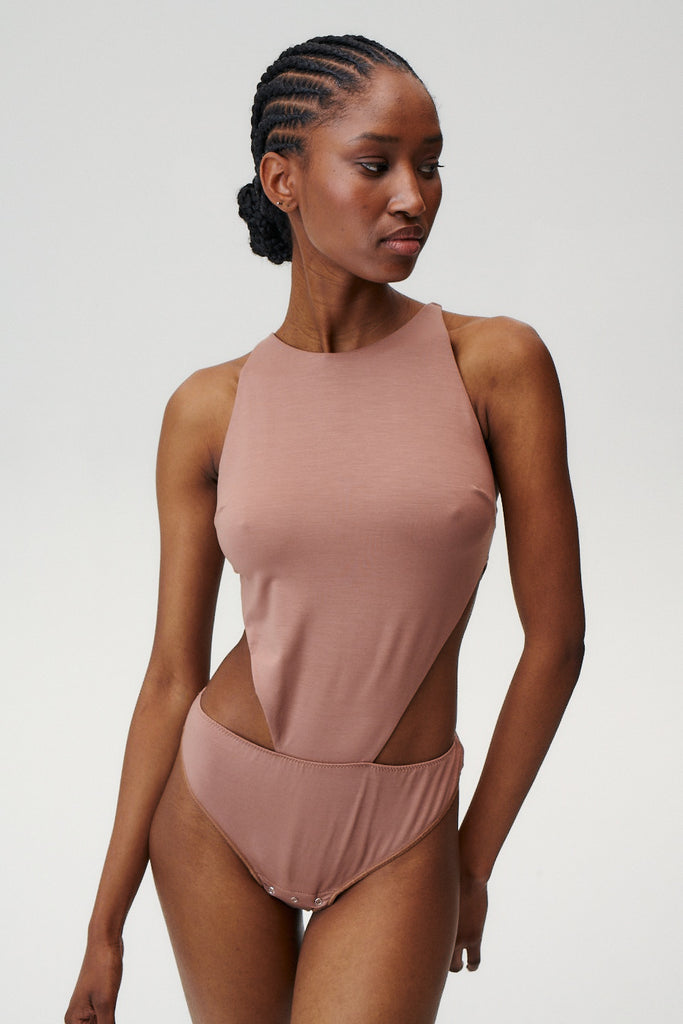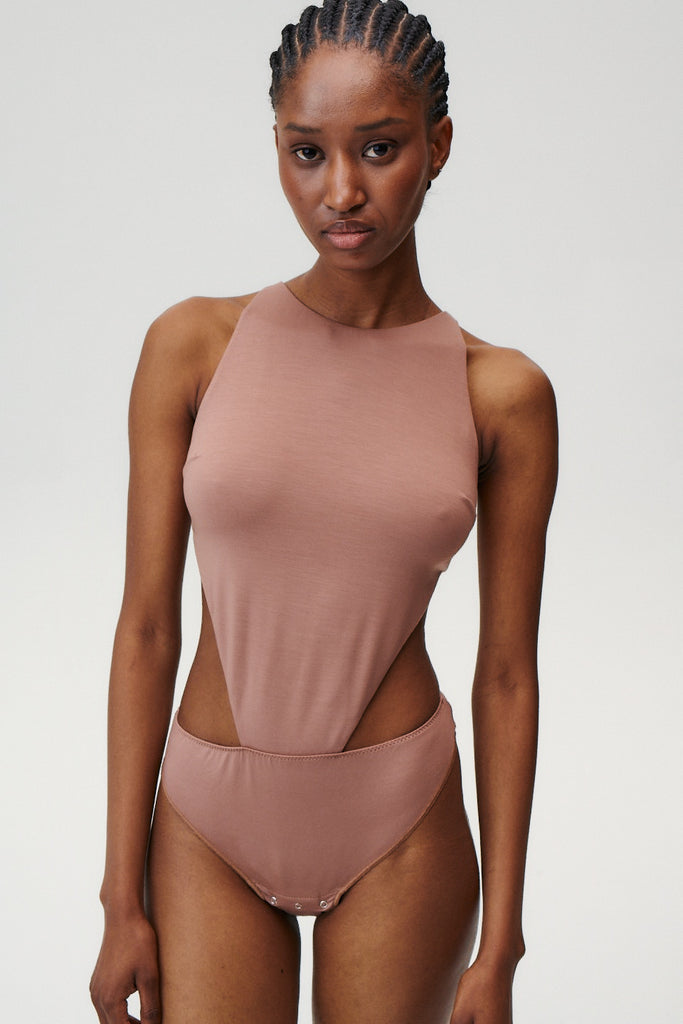 - Ärmelloses Body in Haselnussfarbe aus Lyocell.