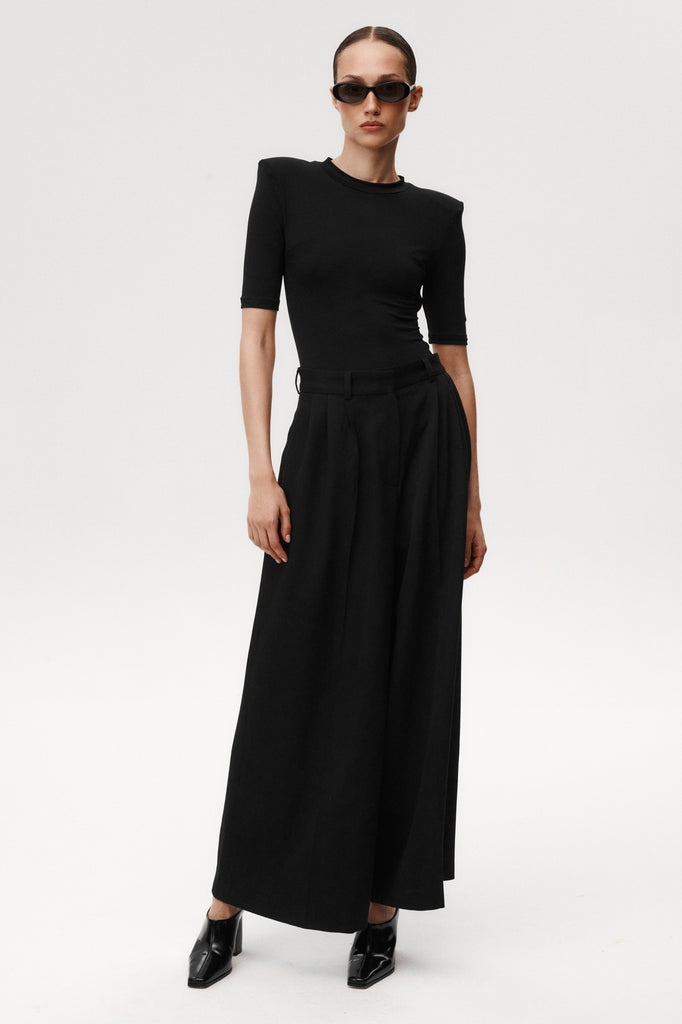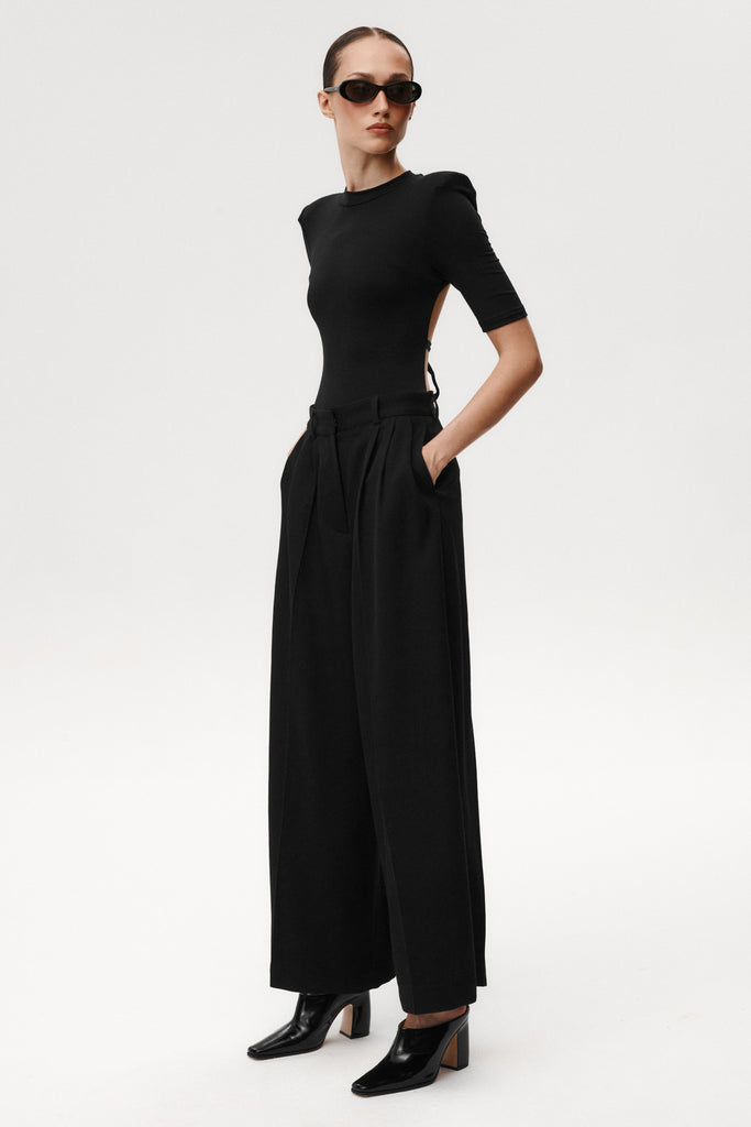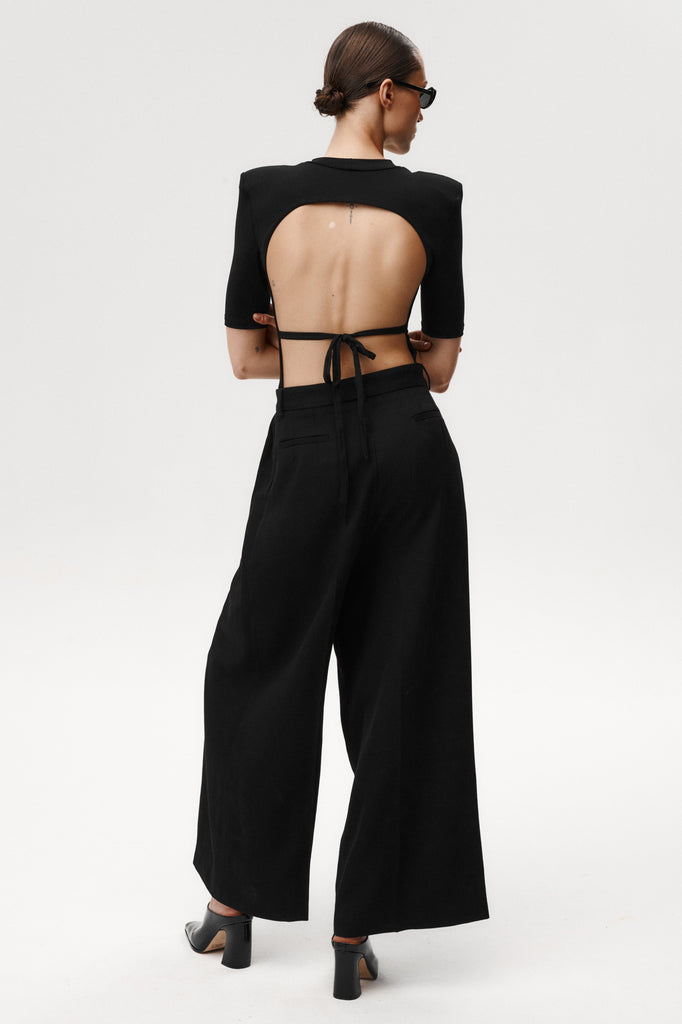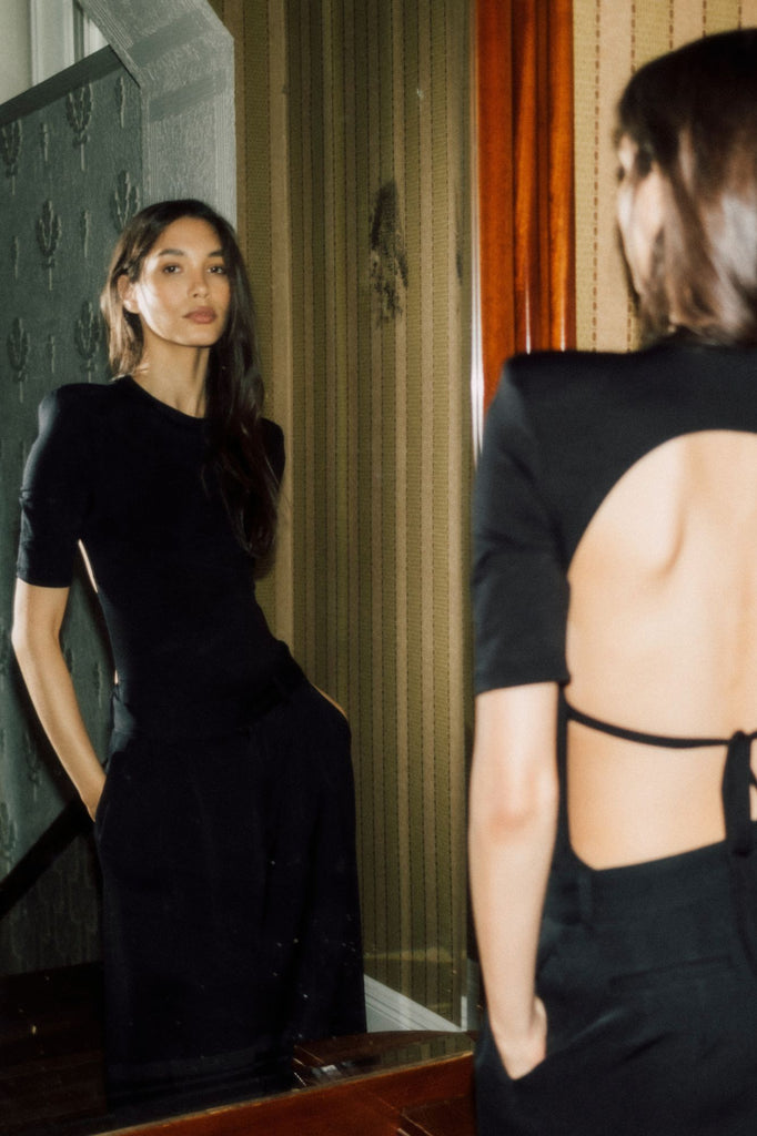 Wir haben diesen Body Watch Your Back genannt, weil es keine Möglichkeit gibt, dass dein Rücken nicht im Mittelpunkt steht, wenn du ihn trägst. Die Schulterpolster zeigen, dass starke, aber auch feminine Silhouetten immer noch im Trend liegen.