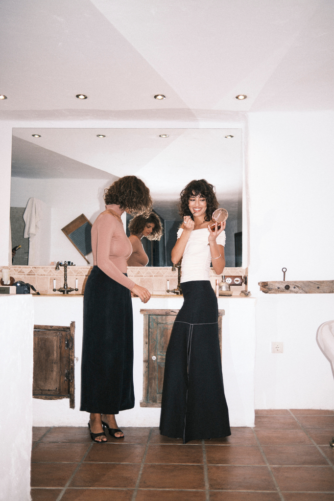 Pauline wears size S and is 175 cm (5'9'') tall. Naomi wears a size XS and is 170 cm (5'7'') tall. Marta wears size XS and is 179 cm (5' 10.5") tall.