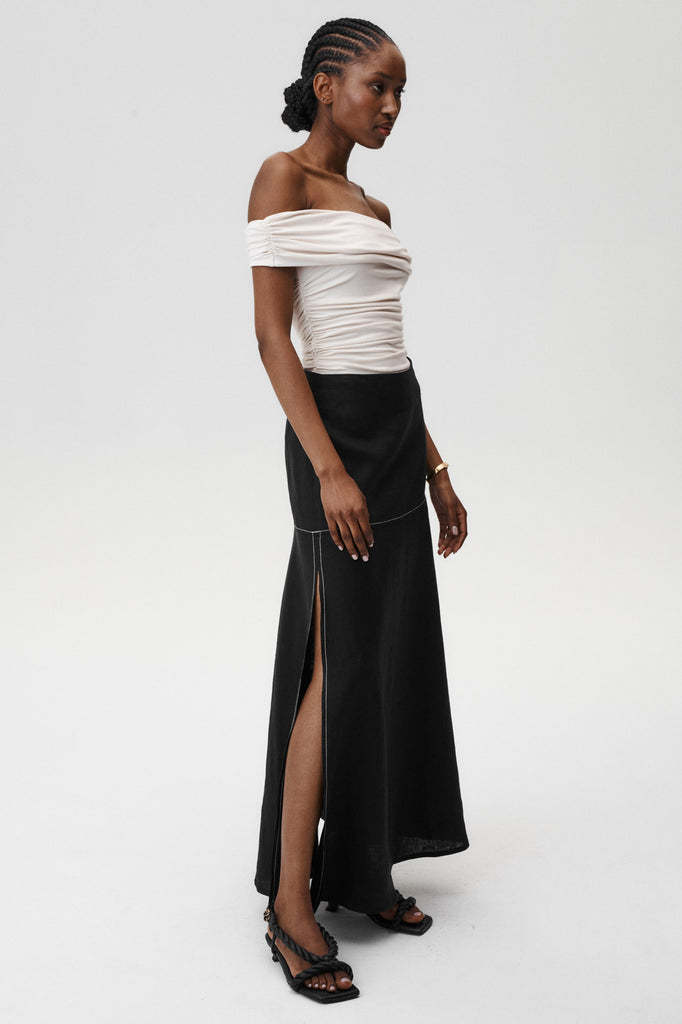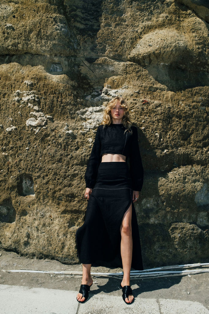 The Serenity Skirt is your next wardrobe hero - chic, breezy, and ready for any occasion. Cut from airy premium linen, this maxi skirt moves effortlessly with you, featuring subtle contrast stitching and side slits that add just the right amount of attitude. Pair it with the matching Selene Shirt for a confident total look, or keep it laid-back with your favorite tee.