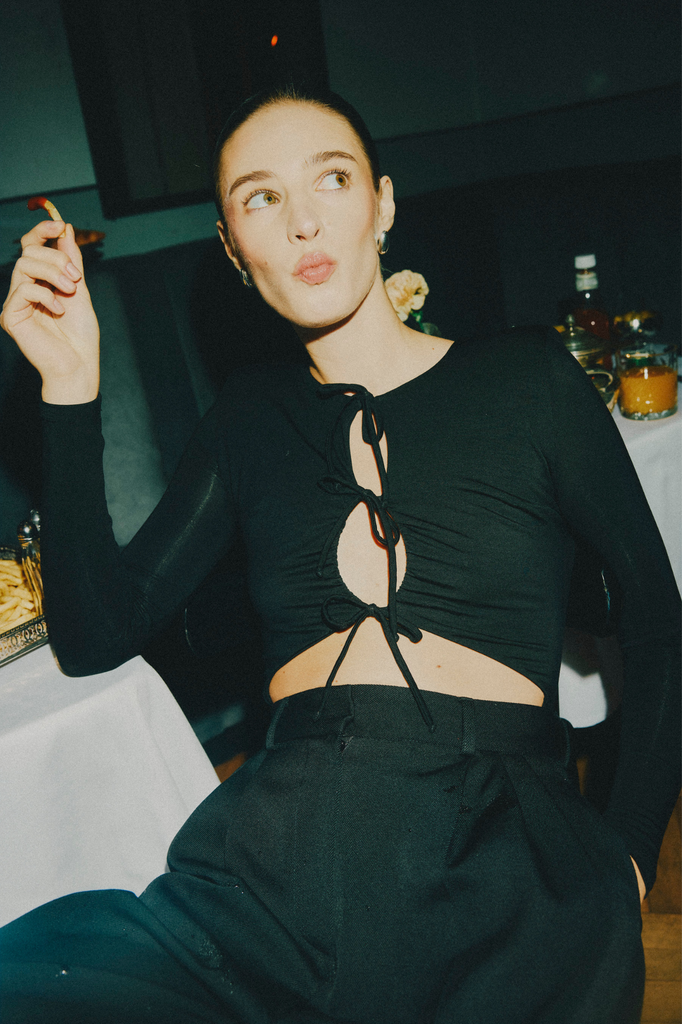 'Con te' means 'with you' in Italian and with this idea this bodysuit was made. Made of Lyocell so it's always close to your body while letting it breathe. Strong, yet feminine shoulder pads to give you a sharp look. And best of all, the strings in the front keep it sexy, but in place while twirling through Italian cities during the summer nights. That's amore!