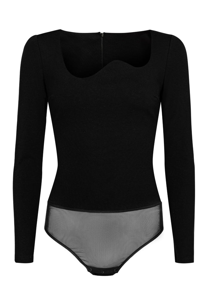 - Bodysuit with asymmetric wave-shaped neckline.