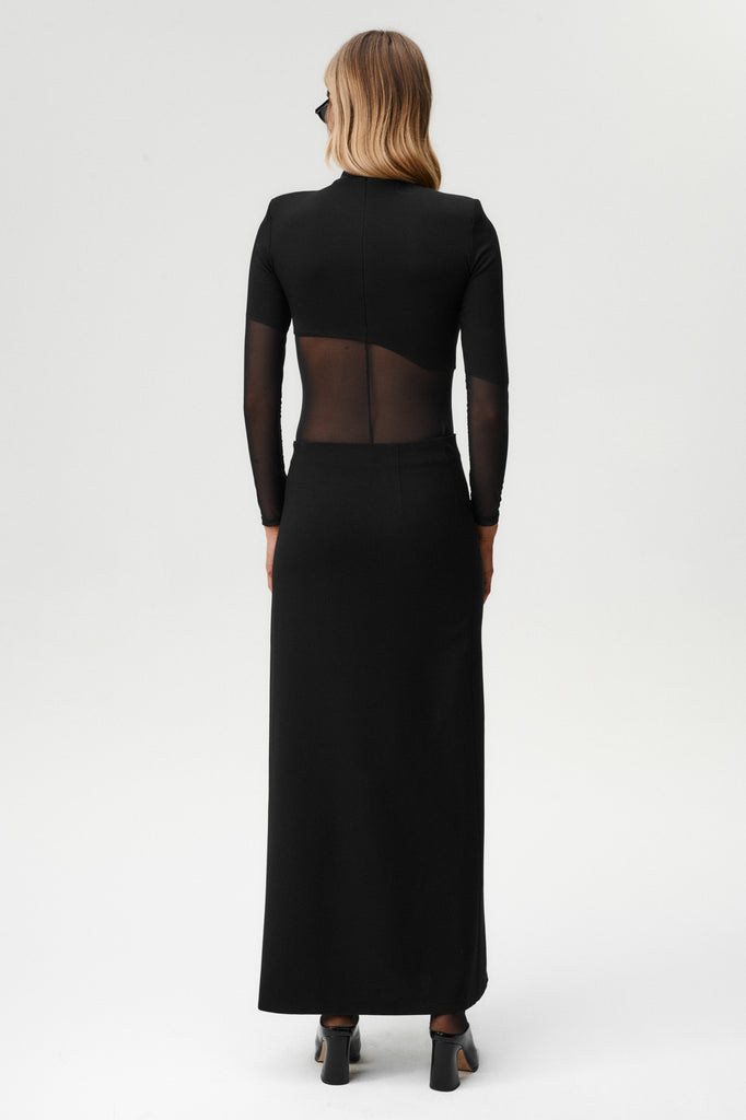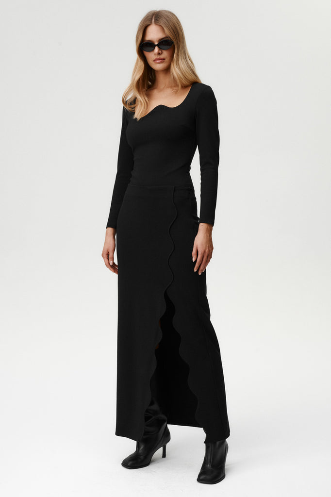 The Ariel Skirt brings a bold twist to a timeless silhouette. Its maxi length flows to the ankle, while the dramatic wave-shaped slit creates movement and showcases the leg in striking fashion. Made from classic punto fabric, it drapes smoothly over the body.The clean lines of the cut let the sculptural slit take center stage, making Ariel both refined and powerfully modern. Style it your way — pair with the Twin Flame Bodysuit, Mademoiselle Bodysuit, or My Element Bodysuit for a sleek evening look. And if you prefer a a slightly more statement look mix it with our signature swimsuit Chic Top or Bardot Top.
