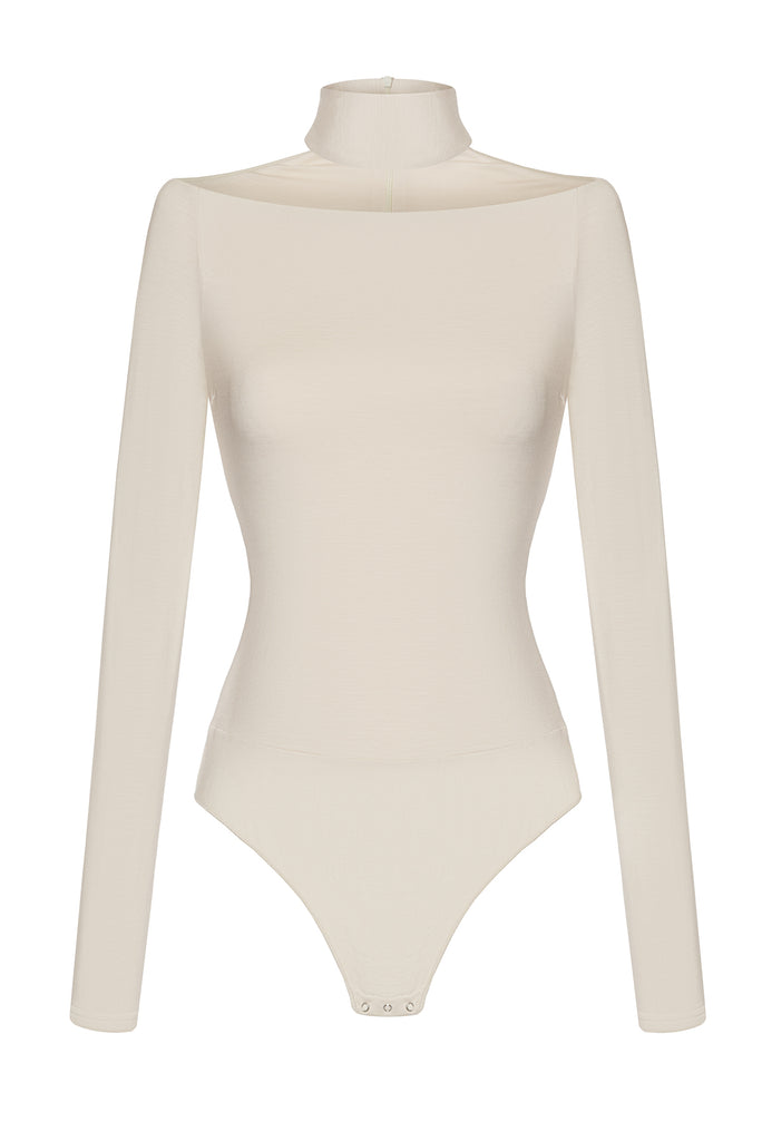 The ultimate, refined elegance with a subtly rounded, asymmetric neckline that beautifully exposes the shoulder and turtleneck for the 90's glamorous look. Just put it on and you'll find yourself on a theatre date, or even on some midnight drinks.